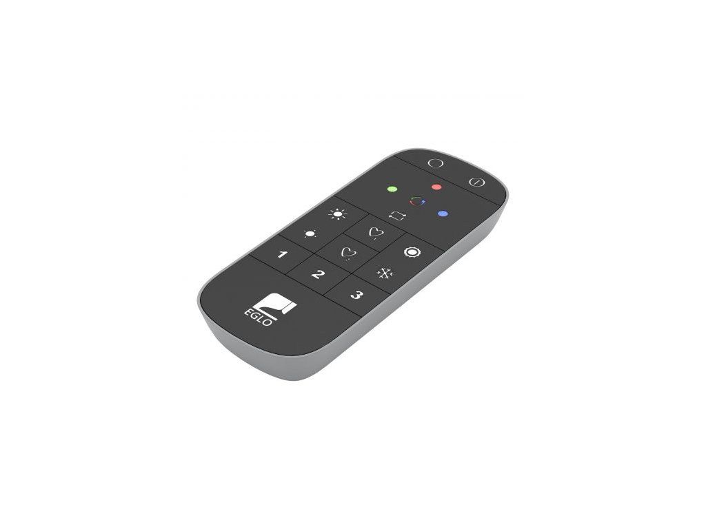 Šedý dálkový ovladač pro svítidla z řady EGLO CONNECT-Z. Umožňuje na dálku vypnout/zapnout svítidlo, stmívat, volit barvu světla, teplotu bílé barvy, uložit si oblíbenou světelnou atmosféru do paměti. Pozor, není kompatibilní se starší řadou svítidel EGLO CONNECT (např. SALOBRENA-C)!