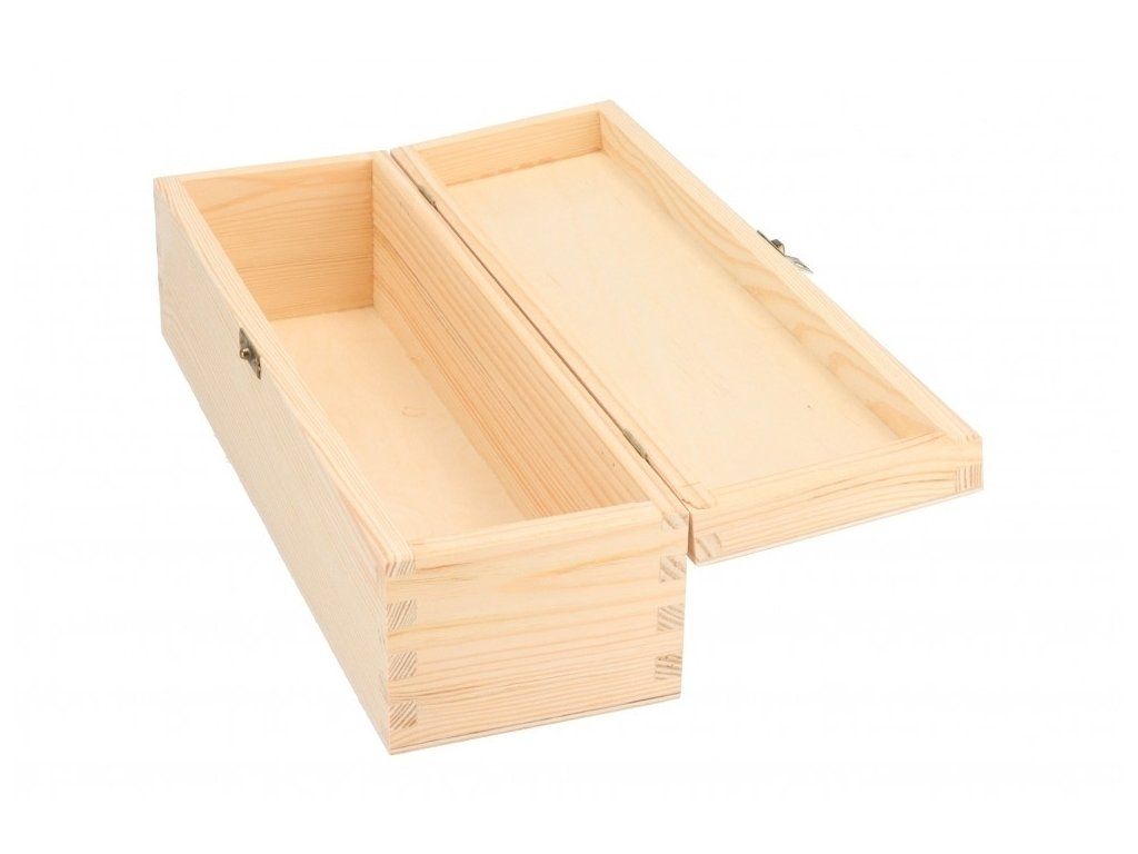 Velmi pěkně zpracovaná krabice na jednu 1,5 l magnum láhev vína vyrobená z borovicového dřeva. Vnitřní rozměr šířka 120, délka 402, výška 100mm a + výška víka 22mm