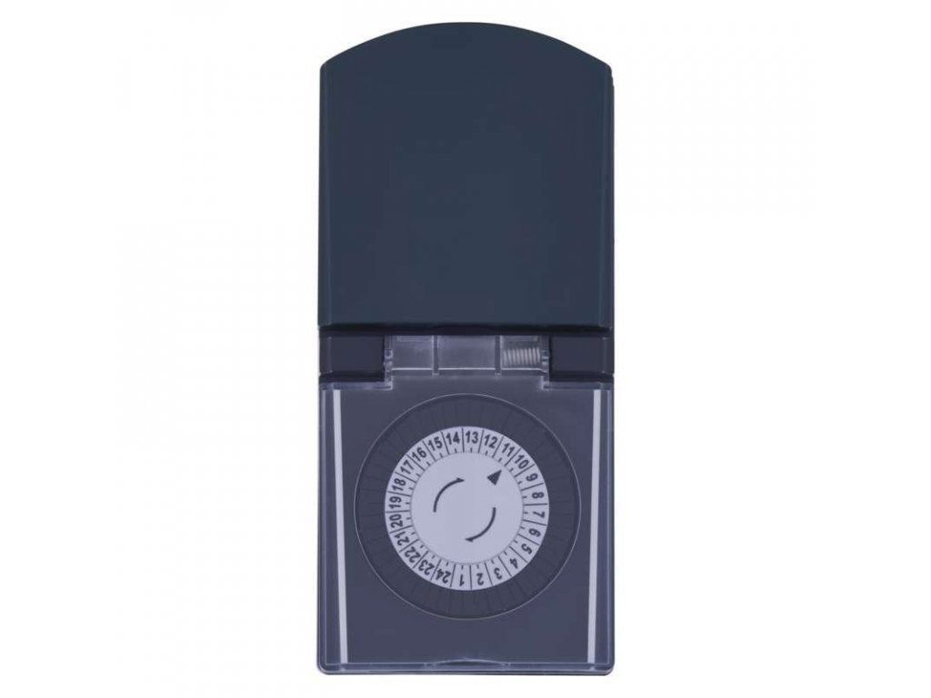 Mechanická spínací zásuvka s 24hodinovým cyklem. Minimální nastavitelný časový úsek je 30 minut. Krytí IP44 umožňuje použití mechanické spínací zásuvky ve venkovních prostorech. Provozní teplota -25 °C do +50 °C.