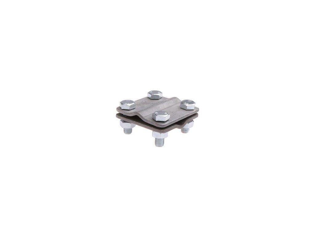 Křížová spojka na hromosvodový drát, vhodná pro kruhové vodiče o průměru 7-10 mm.