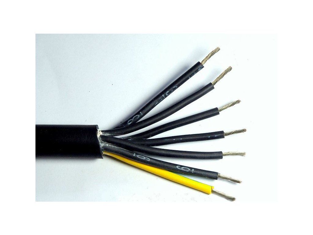 Sedmižilový kabel o průřezu vodičů 1 mm2. Barevné označení vodičů je 6x černá, 1x zelenožlutá. Vnější průměr kabelu je 13 mm. Jmenovité napětí je 300/500 V.
