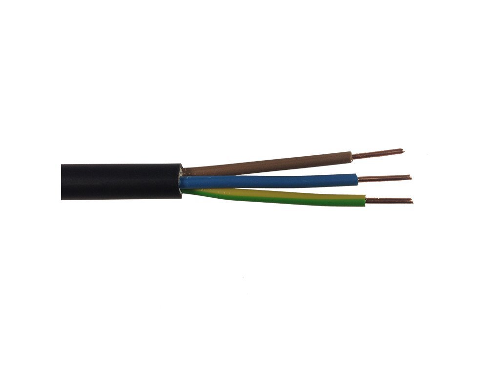 Kabel CYKY-J 3x6 určený pro pevné uložení do zdi nebo do země. Technické parametry: počet vodičů: 3; barva izolace: černá; barva vodičů: hnědá, modrá, zelenožlutá. CENA UVEDENA ZA 1m.