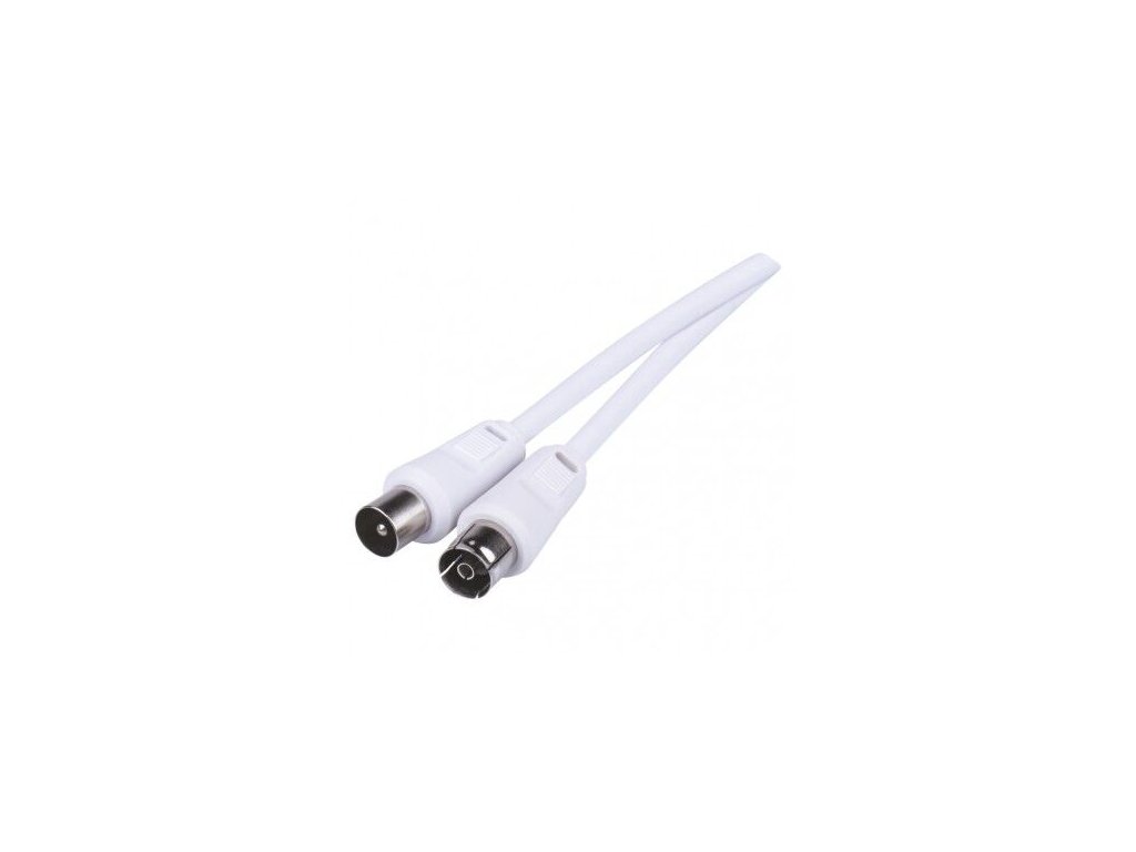 Anténní koaxiální kabel s vidlicí a zásuvkou IEC. Kabel má dvojité stínění pro redukci elektromagnetického rušení. Délka kabelu je 1,25 m. Koaxiální kabel je vhodný pro SAT, DVB-T, ANT, DECODER, FLAT TV a TV.