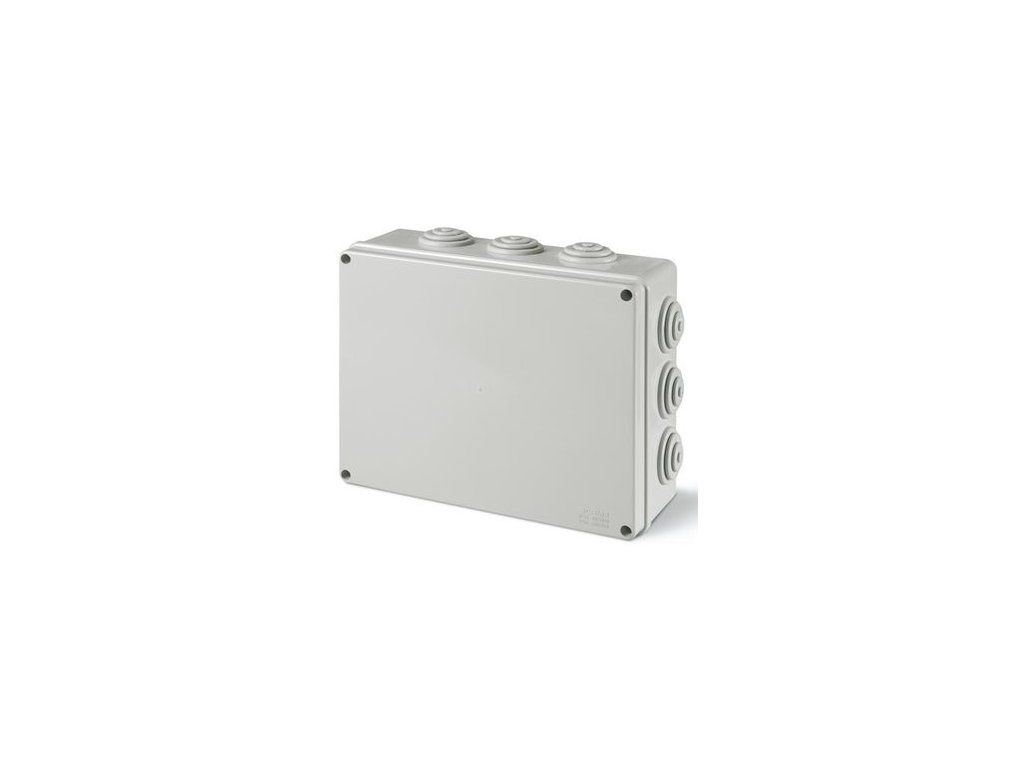 Krabice bez vývodek s přípravou pro uchycení DIN lišty v šedém barevném provedení s plným víkem. Použití pro rozbočení nebo ukončení kabelů ve vnitřních i venkovních instalacích.
