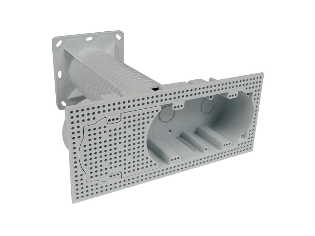 Pro instalaci dvou až tří přístrojů s osovou roztečí 71 mm v zateplených fasádách budov tloušťky 100 - 250 mm. V případě použití trojrámečku s nízkým krytím je nutné se informovat u dodavatelů přístrojů o možném způsobu jeho dotěsnění na IP44. Eliminuje vytváření tepelných mostů. Součástí balení jsou kvalitní hmoždinky, vruty pro montáž a přepážka pro oddělení více obvodů. Při instalaci na hrubší omítku je doporučeno utěsnění přístroje silikonem.