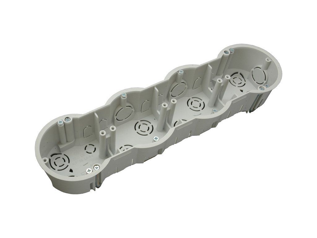 SEZ KUP 68LP/4 SK čtyřnásobná krabice do sádrokartonu a dutých stěn, pro rozvody s napětím do 400V a max. proudem 16A, 850 °C pro přístroje s čtyřnásobným rámečkem.