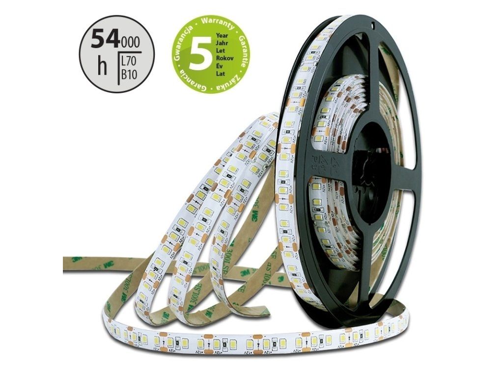 LED pásek SMD2835, teplá bílá (3000K), 4,8W, 60LED, 400lm/m, CRI>90, segment 50mm, 3LED/segment, IP20, DC 12V, životnost 54000h, šíře 8mm, bílý PCB pásek, max. délka pásku při jednostranném zapojení: 5m, opatřen samolepící páskou 3M, UV stabilní.Doplňkové parametry