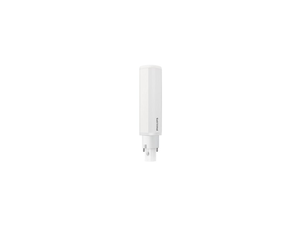 Dvoupinová lineární LED zářivka Philips PL-C G24d2 nahrazuje klasickou 18 W zářivku. Svítí teplým bílým světlem 3000 K se světelným tokem 600 lm.