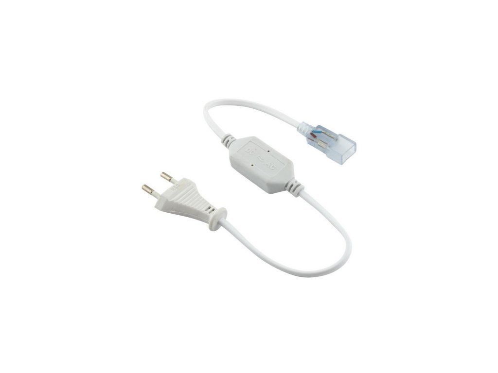 Napájecí kabelová koncovka s usměrňovačem pro LED pásky na 230 V DC. Zatížitelnost max. 350 W což odpovídá maximálně 50-ti metrům LED pásku 230 V DC.