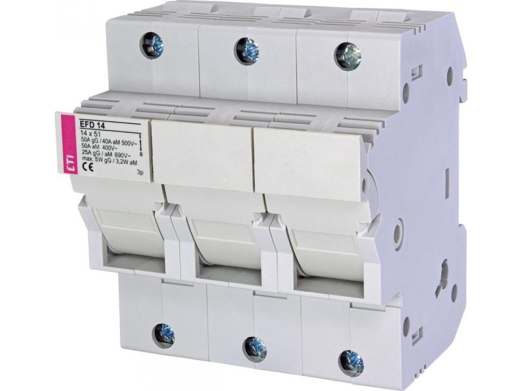 Pro velikost pojistky: 1,4 x 5,1 cm, počet pólů: 3, jmenovitý proud: 50 A