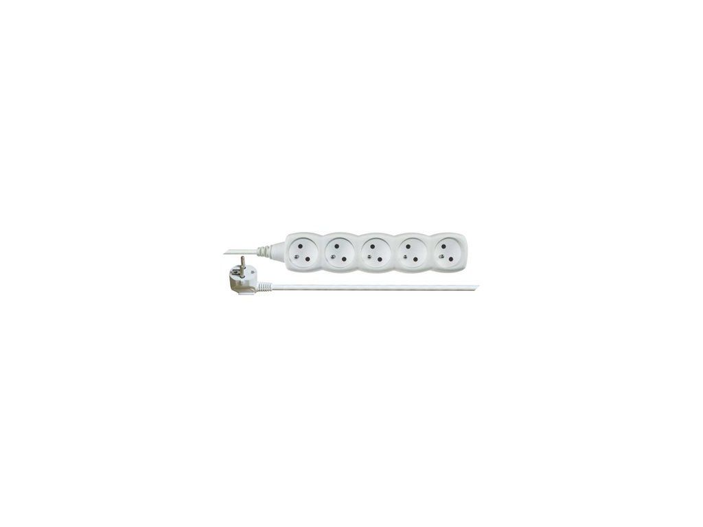 Prodlužovací kabel – 5 zásuvek, 5m, bílý
