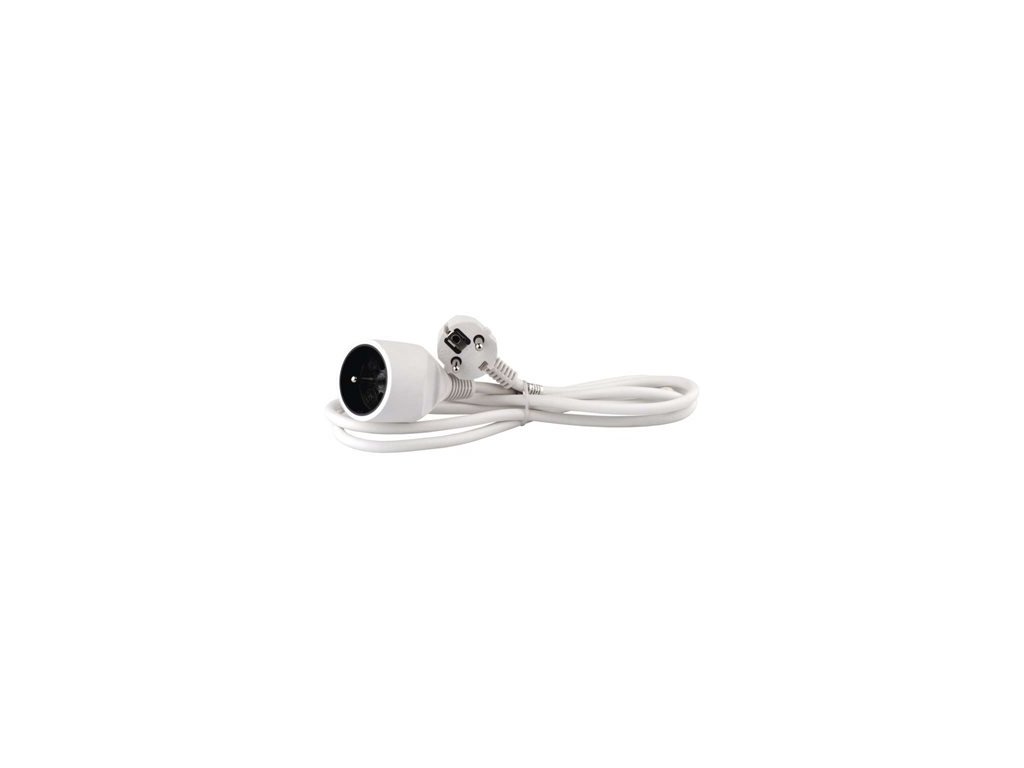 Bílý prodlužovací přívod s jednou zásuvkou - spojka, délkou 2 m a průřezem vodiče 1 mm2. Vhodný pro maximální zátěž 10 A max. Prodlužovací přívod 2 m na 230 V~ slouží k prodloužení elektrické energie tam, kam pevná zásuvka nedosáhne.