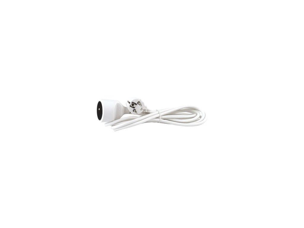 Bílý prodlužovací přívod s jednou zásuvkou - spojka, délkou 2 m a průřezem vodiče 1 mm2. Vhodný pro maximální zátěž 10 A. Prodlužovací přívod 2 m na 230 V~ slouží k prodloužení elektrické energie tam, kam pevná zásuvka nedosáhne.