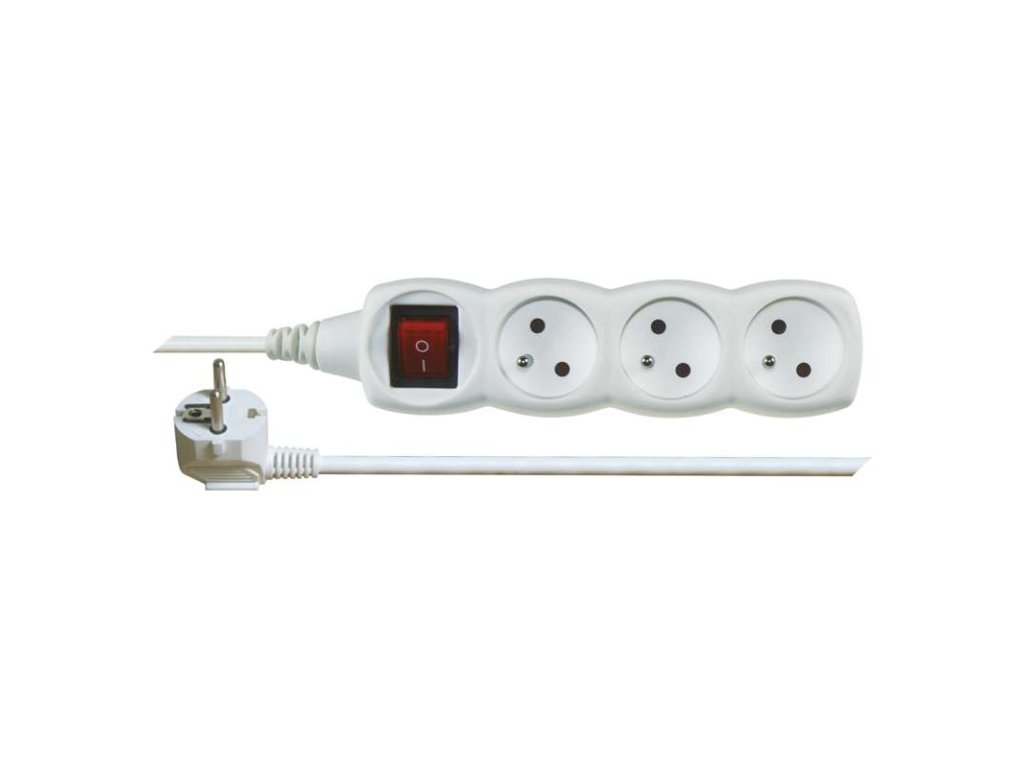 Bílý prodlužovací přívod, 3 zásuvka s vypínačem, délkou 3 m a průřezem vodiče 1 mm2. Vhodný pro maximální zátěž 10 A. Prodlužovací přívod 3 m na 230 V~ slouží k prodloužení elektrické energie tam, kam pevná zásuvka nedosáhne.