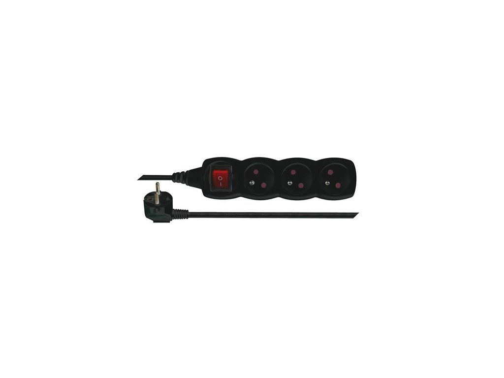Černý prodlužovací přívod, 3 zásuvka s vypínačem, délkou 5 m a průřezem vodiče 1 mm2. Vhodný pro maximální zátěž 10 A. Prodlužovací přívod 5 m na 230 V~ slouží k prodloužení elektrické energie tam, kam pevná zásuvka nedosáhne.