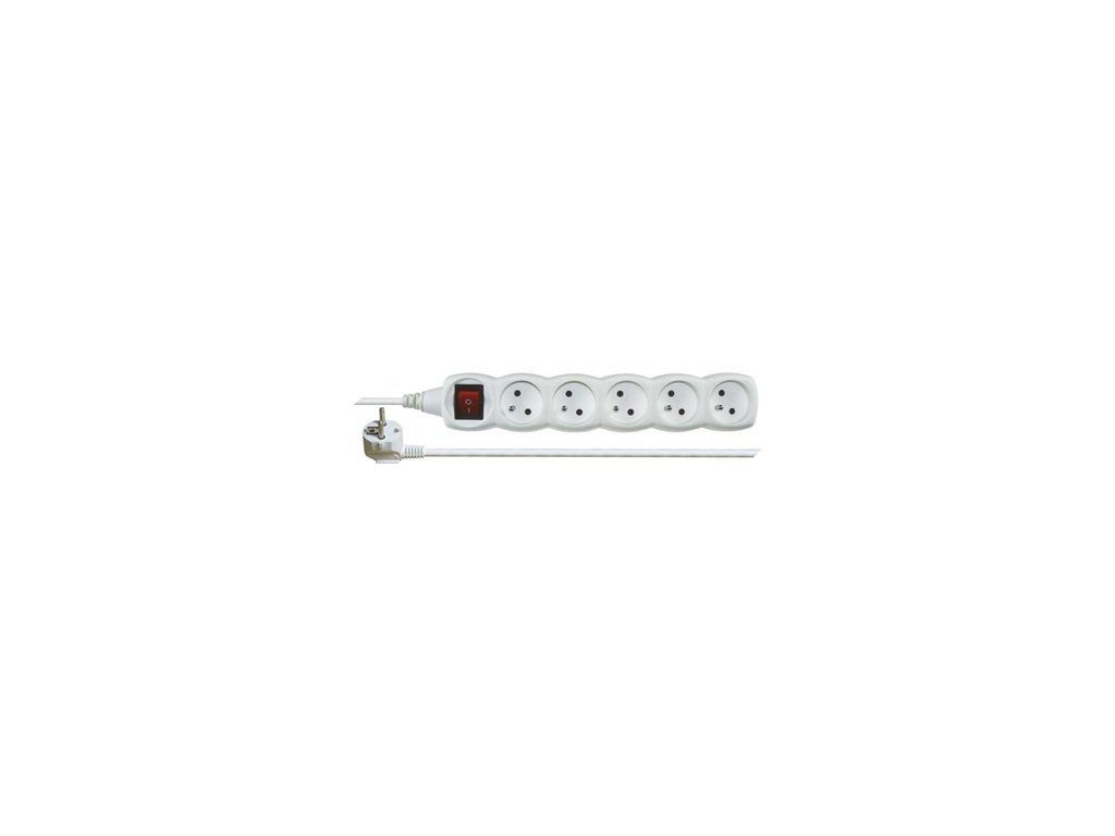 Prodlužovací kabel s vypínačem – 5 zásuvky, 2m, bílý