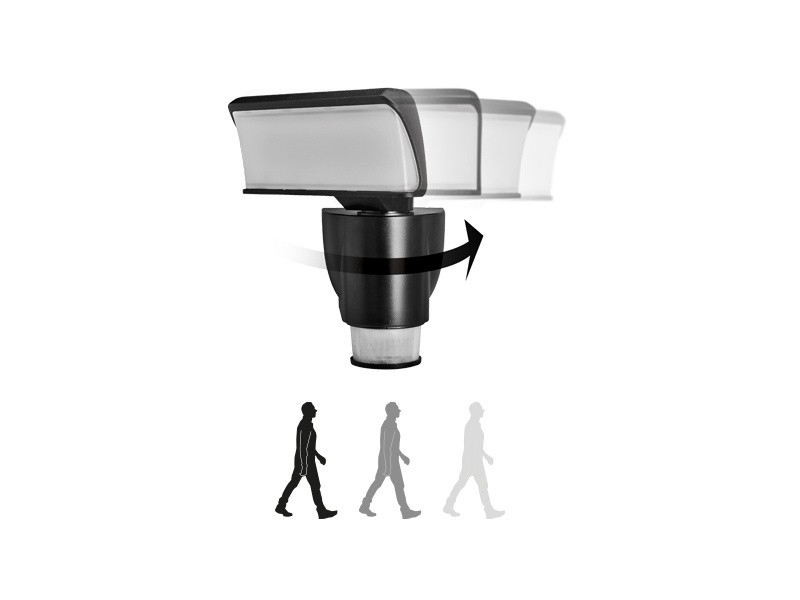 Už nikdy se nemusíte trápit tím, že světlo nemíří tam, kde je potřeba. Automatické natáčení světla za pohybem: Úhel natáčení do stran 90° na každou stranu, naklopení směrem nahoru až 90° a dolů 30°.