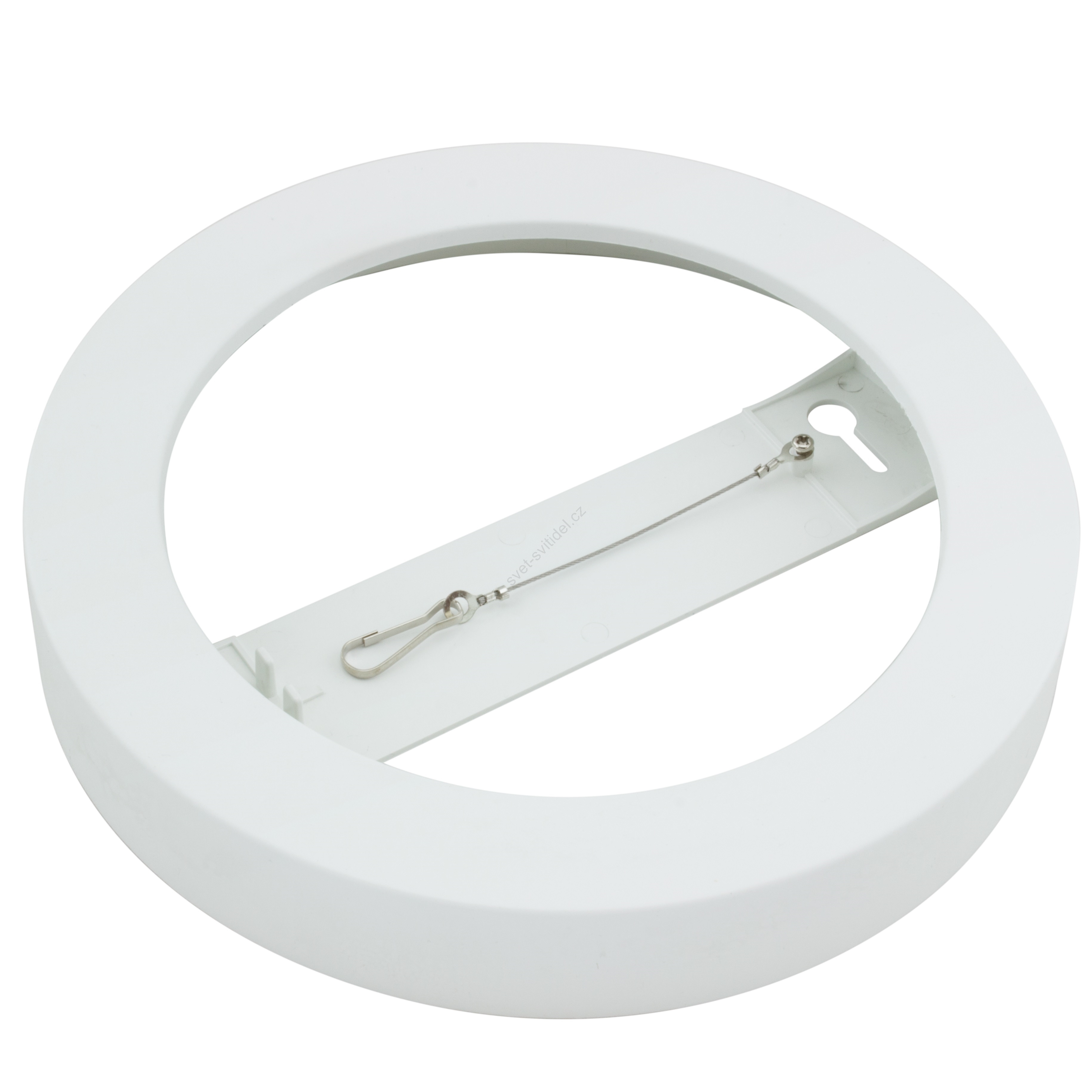Stropní rámeček pro PODHLED UNI 3v1 24W kulatý slouží k přeměně LED panelu ze zapuštěné instalace na přisazenou. Je vyroben z bílého plastu a umožňuje jednoduchou montáž svítidla přímo na strop. Ideální řešení, pokud nelze použít podhled.