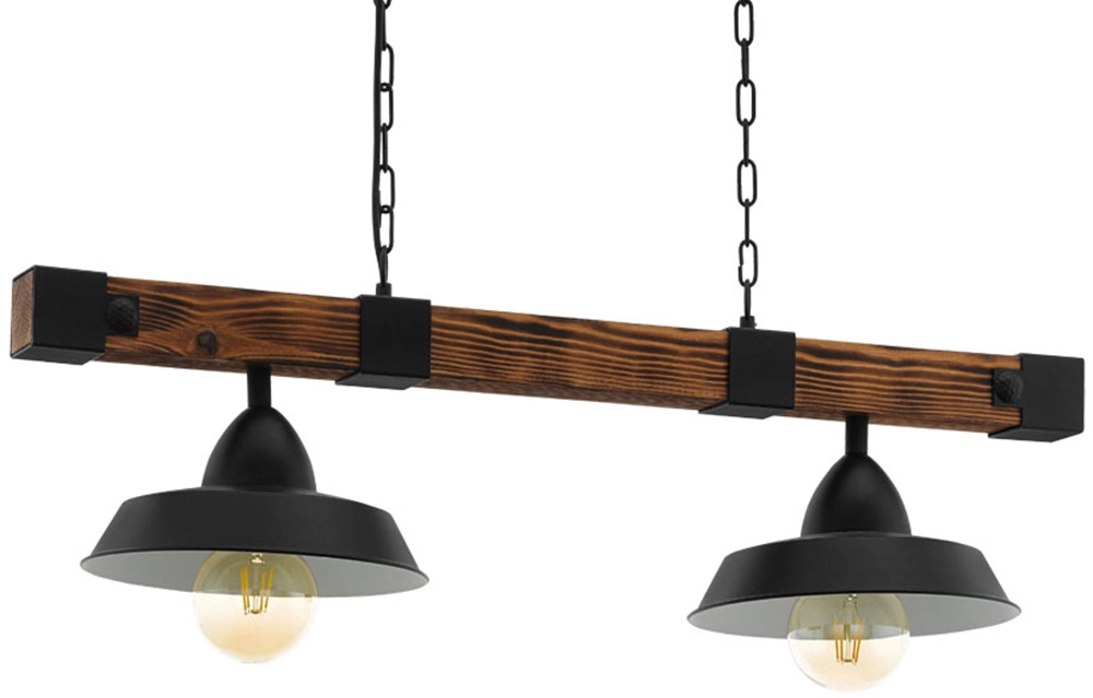 Svítidlo EGLO OLDBURY je stylové dvojité závěsné svítidlo s dvojicí patic E27 o maximálním výkonu 2×120 W, ideální pro hlavní osvětlení interiérových prostor. Kombinace černé a hnědé barvy vytváří nadčasový a elegantní vzhled, který skvěle doplní jak rustikální, tak moderní styl zařízení. Díky minimalistickému designu s odhalenými žárovkami v kovových objímkách je skvělou volbou nad kuchyňský ostrov, jídelní stůl nebo do obývacího prostoru.