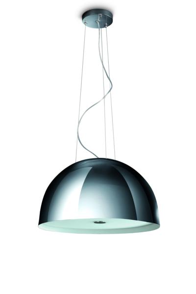 Nadčasový elegantní lustr v povrchové úpravě leský chrom, vhodný například nad jídelní stůl.
