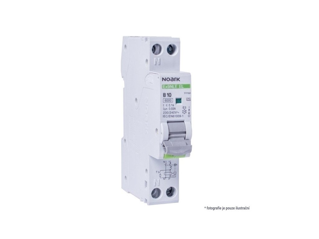 Proudový chránič Ex9NLE-EL -10A/1N/0,03 NOARK 6kA 1modul /AKCE 4+1 zdarma/