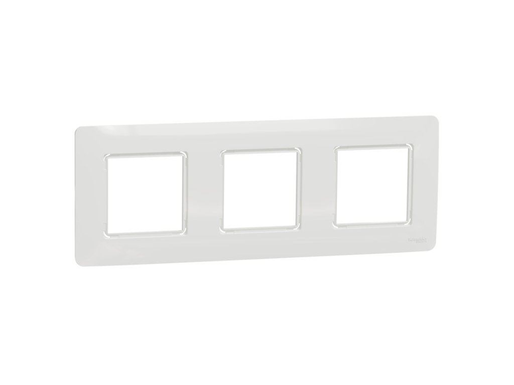 Krycí rámeček trojnásobný Unica Studio Outline, v bílé barvě. Pro vertikální i horizontální montáž. Řada Unica Studio je vyrobena z vysoce kvalitního probarveného termoplastu, je robusní a má vysokou životnost.