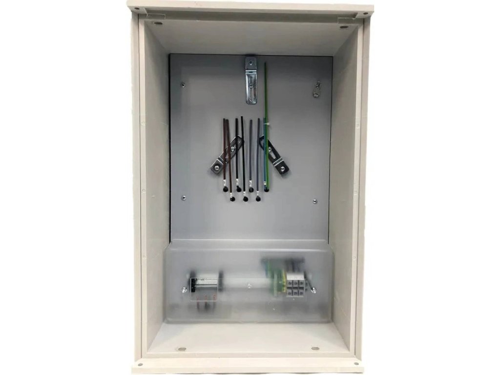 Elektroměrový rozvaděč pro jeden jednotarifní třífázový elektroměr pro měření do 40A. Hlavní jistič není standardně součástí rozvaděče.Doplňkové parametry