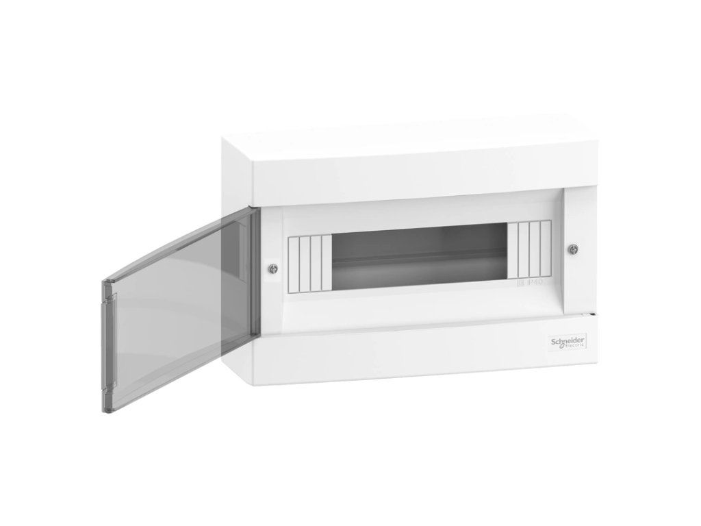 Tento Easy9 EU produkt je modulární skříň pro povrchovou montáž. Skládá se z 1 řady 12 modulů o průměru 18 mm. Lze do něj umístit všechny typy modulárních rozváděčů. Dodává se s 1 zemnicí a 1 nulovou svorkovnicí s jejich podpěrou a každá svorkovnice má 8 výstupů (4x16 mm² + 4x10 mm²). Je vybaven oboustrannými průhlednými kouřovými dveřmi s úhlem otevření 180°. Barva skříně je bílá (RAL 9003). Tato skříň je určena pro vnitřní instalaci. Stupeň krytí je IP40 při zavřených dveřích a IP30 při otevřených dveřích. Na skříni nejsou žádné předvýřezy a zákazníci mohou k provedení použít vrtačku. Je určen pro nové nebo rekonstruované instalace v obytných budovách.Doplňkové parametry