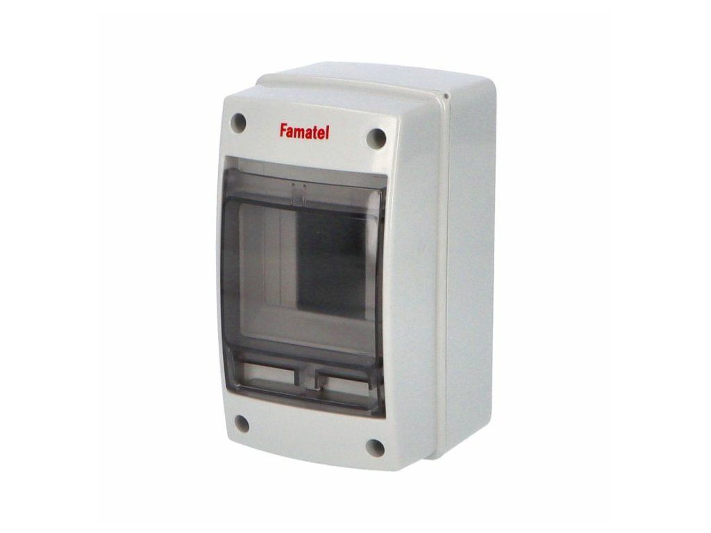 Plastová rozvodnice pro venkovní elektroinstalace s průhlednými dvířky, určena pro venkovní použití.