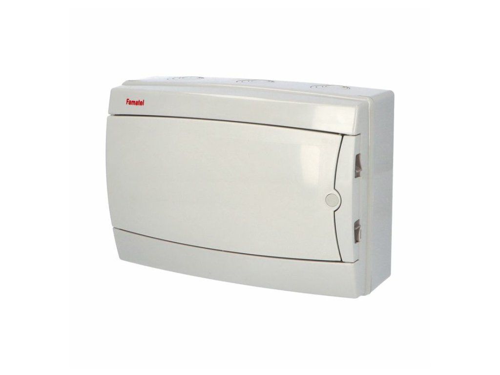Plastová rozvodnice pro venkovní elektroinstalace s bílými dvířky.