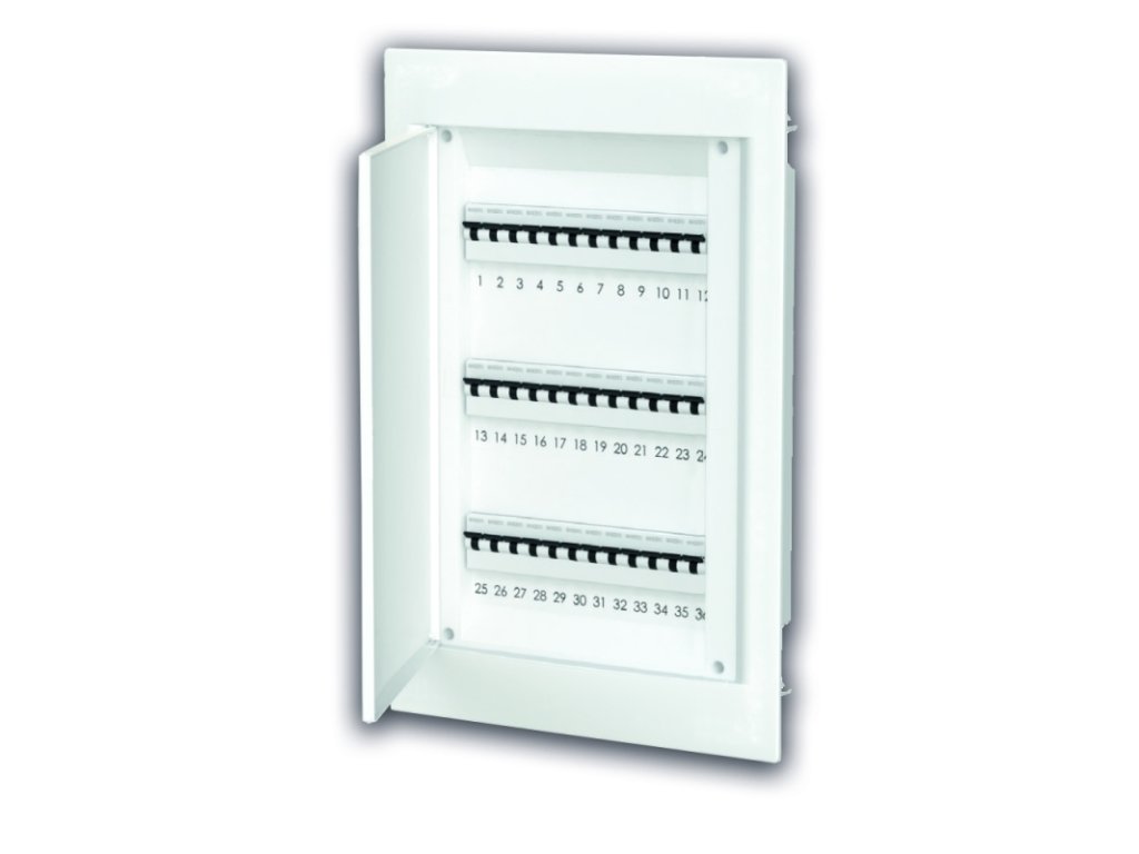Rozvodnice s 36 moduly DIN, krytí IP40, bílý rám, bíle dveře, svorkovnice N/PE.