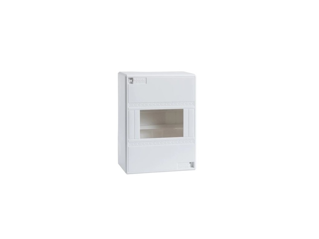 Plastová rozvodnice pro domovní elektroinstalace bez dvířek, určena pro vnitřní použití.