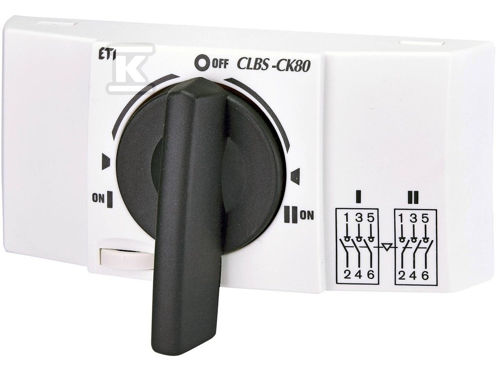 Adaptér CLBS-CK80 umožňuje snadné propojení dvou odpojovačů CLBS 16-80A 3P a vytvoření funkčního přepínače I-0-II. Toto řešení nachází uplatnění v elektrických instalacích, kde je vyžadováno přepínání mezi různými zdroji napájení nebo zátěžemi. Díky tomu je možné např. plynulý přechod na záložní napájení nebo výběr mezi různými odběrateli energie. Je třeba mít na paměti, že pro kompletní sadu přepínače je nutné dodatečně objednat dva odpojovače CLBS.Doplňkové parametry