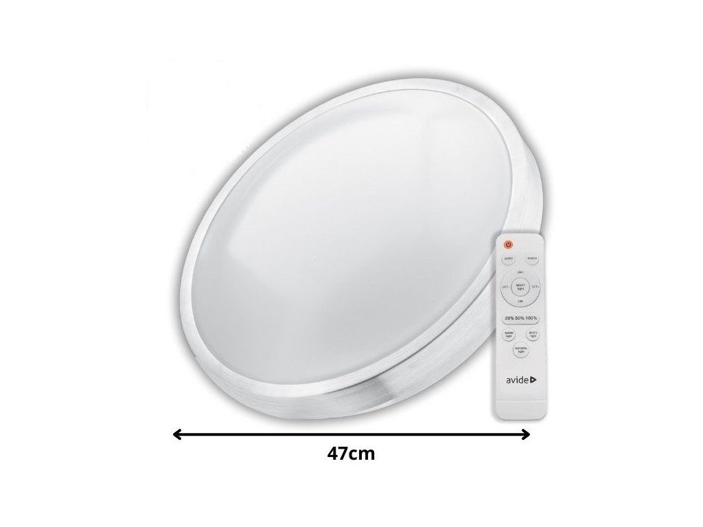 Prémiové stmívatelné LED stropní svítidlo Pandora je s průměrem 47,5cm ojedinělým velkým stropním nebo nástěnným led svítidlem německé značky AVIDE. Toto led stropní svítidlo dodáváme s dálkovým ovládáním na 2 mikrotužkové baterie AAA, které jsou součástí balení.