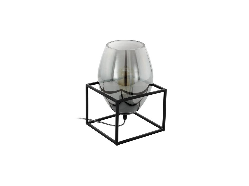 Originální stolní svítidlo vhodné do moderního interiéru. Černá kovová základna, uvnitř skleněné svítidlo z lesklého kouřového skla. Dotvoří intimní atmosféru v místnosti, ať už to bude obývací pokoj, pracovna, chodba nebo ložnice. Ovládá se kolébkovým vypínačem na přívodním kabelu. Zdroj není součástí balení. Zde si můžete zakoupit vhodný LED úsporný zdroj.