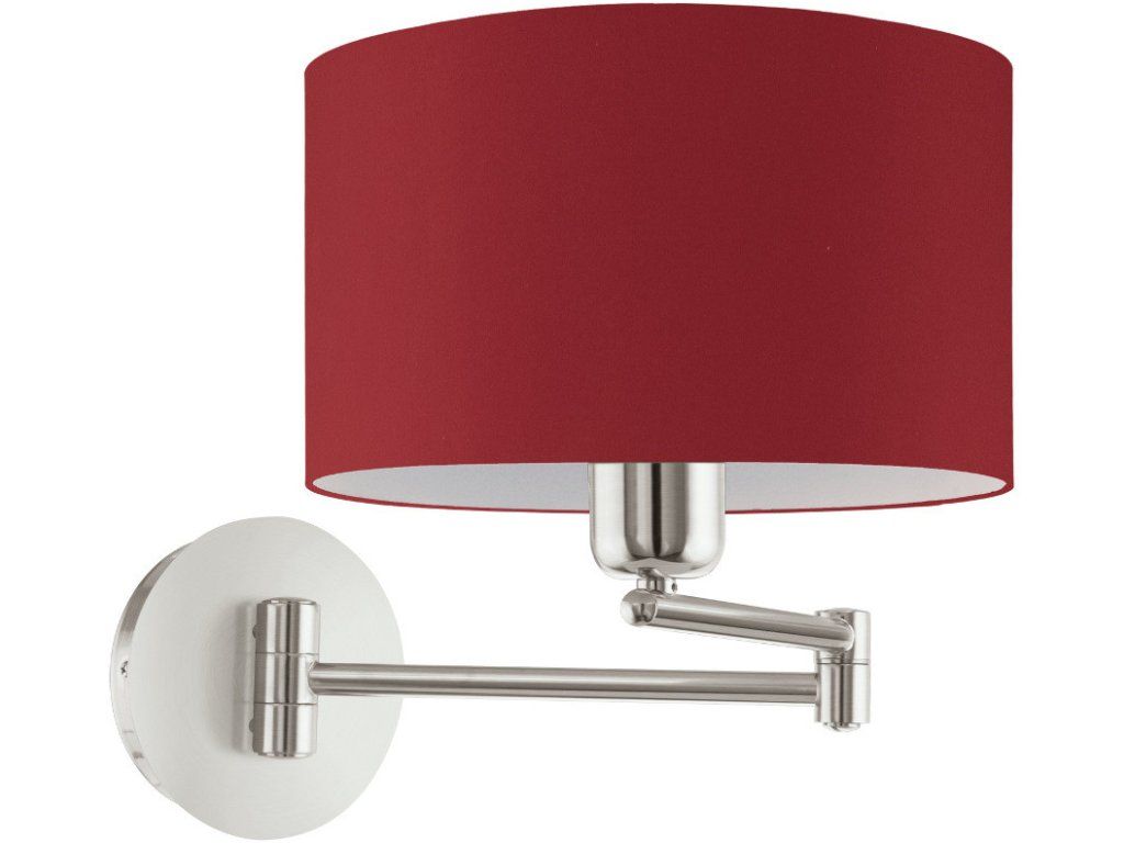 Elegantní nástěnné svítidlo v moderním stylu. Dominantou je červené textilní stínidlo s bílým vnitřkem. Svítidlo lze díky kloubovému systému nasměrovat tam, kam právě potřebujete.Obsahuje kolébkový vypínač.
