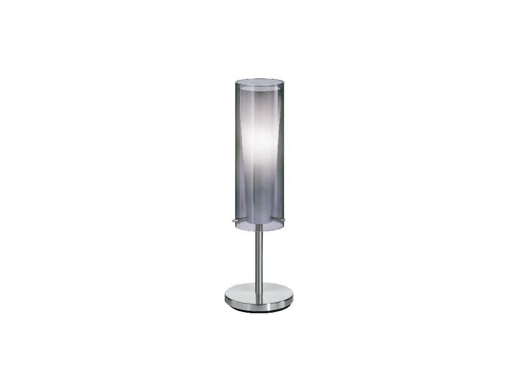 Stolní lampička v elegantním provedení. Kombinace chromového kovu a lehce kouřového skla je velmi působivá. Lampička se hodí na noční stolky nebo lze postavit na komodu třeba v obýváku nebo předsíni.