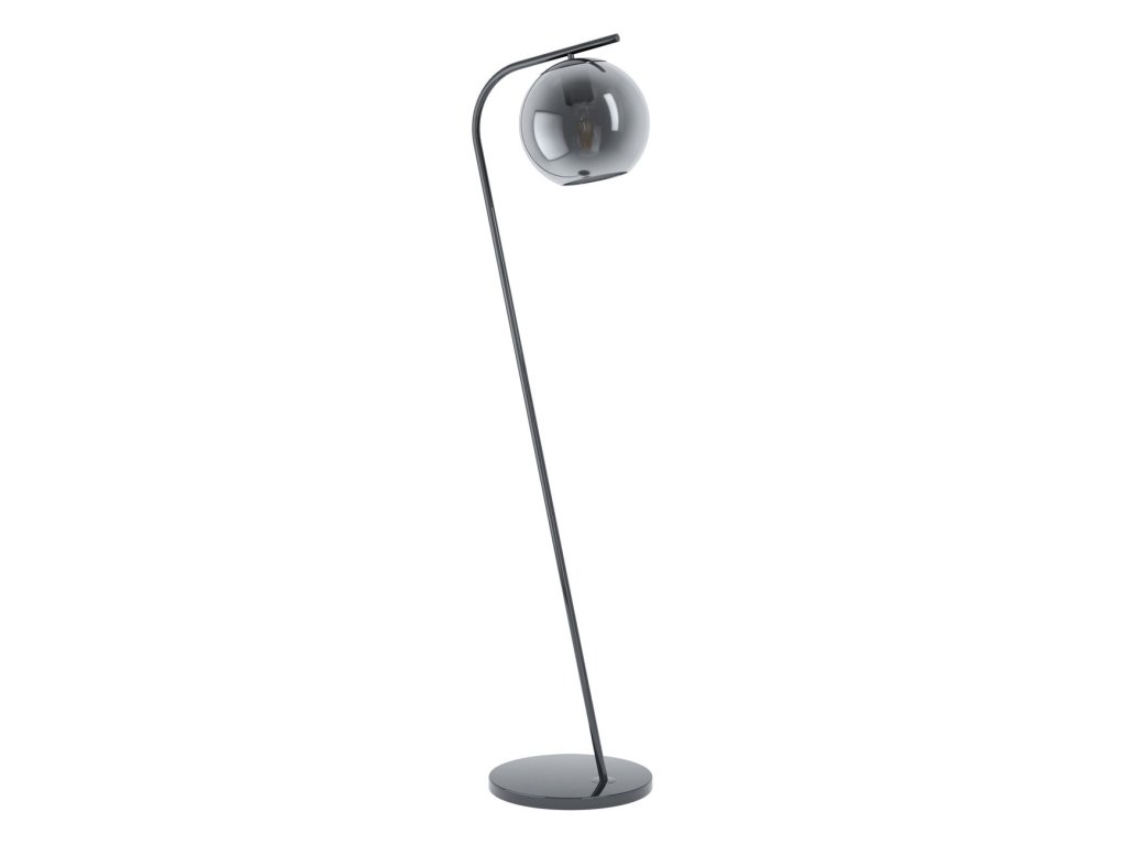 Elegantní stojací lampa s černou kovovou základnou a efektním stínidlem z černého kouřového skla ve tvaru koule. Doplňte vhodnou žárovkou a dodejte lampě výsledný styl (patice E27 a výkon max. 40W). Postavte do rohu ložnice, obýváku, haly nebo vedle sedací soupravy, křesla či postele. Použijte k navození intimní atmosféry. Nášlapný vypínač na přívodním kabelu. Výška 150 cm.