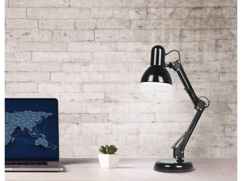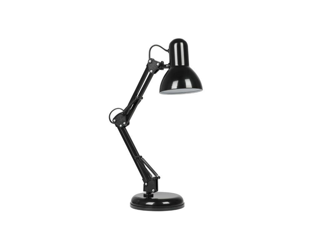 Pracovní lampička v lesklém černém provedení. Ohebná ve třech kloubech. Max. výška 53 cm. Vhodná na stůl do kanceláře, domácí pracovny, dílny, studenstského pokoje nebo ateliéru.Ovládá se kolébkovým vypínačem na přívodním kabelu.