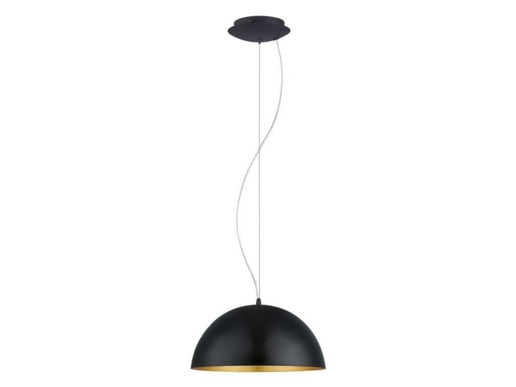 Elegantní kovové závěsné svítidlo v kontrastní kombinaci černé a zlaté. Odlesky žárovky od zlatého vnitřku vytvářejí příjemné světlo. Zavěste nad barový pult, jídelní stůl, do obývacího pokoje nebo haly.