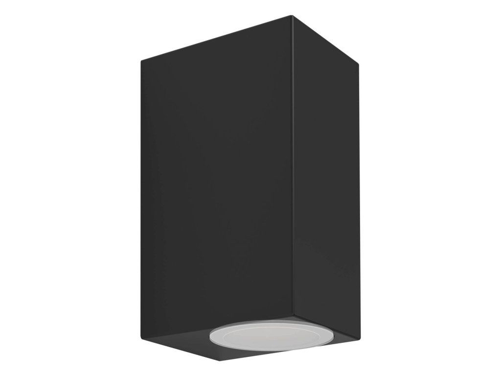 Jednoduché, moderní venkovní nástěnné svítidlo. Elegantní černá barva. Umístěte na stěny domu, venkovní chodby, zdi lemující cesty nebo chodníky, na stěny garáže nebo venkovního domku. Použijte k osvětlení terasy, balkónu, pergoly nebo vchodových dveří.