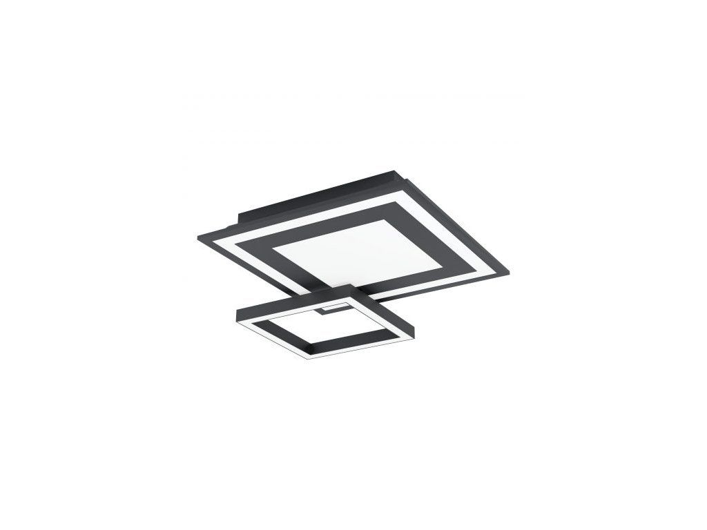 Elegantní černo-bílé stropní LED svítidlo z řady EGLO CONNECT. Menší rámeček je pohyblivý, dá se pootočit z rohu až do pozice, kdy jsou rámečky vedle sebe. Dálkovým ovladačem (není součástí balení) a aplikací lze měnit barvy a také teplotu bílé – od studené, přes neutrální, po teplou. Hodit se bude do moderních interiérů.