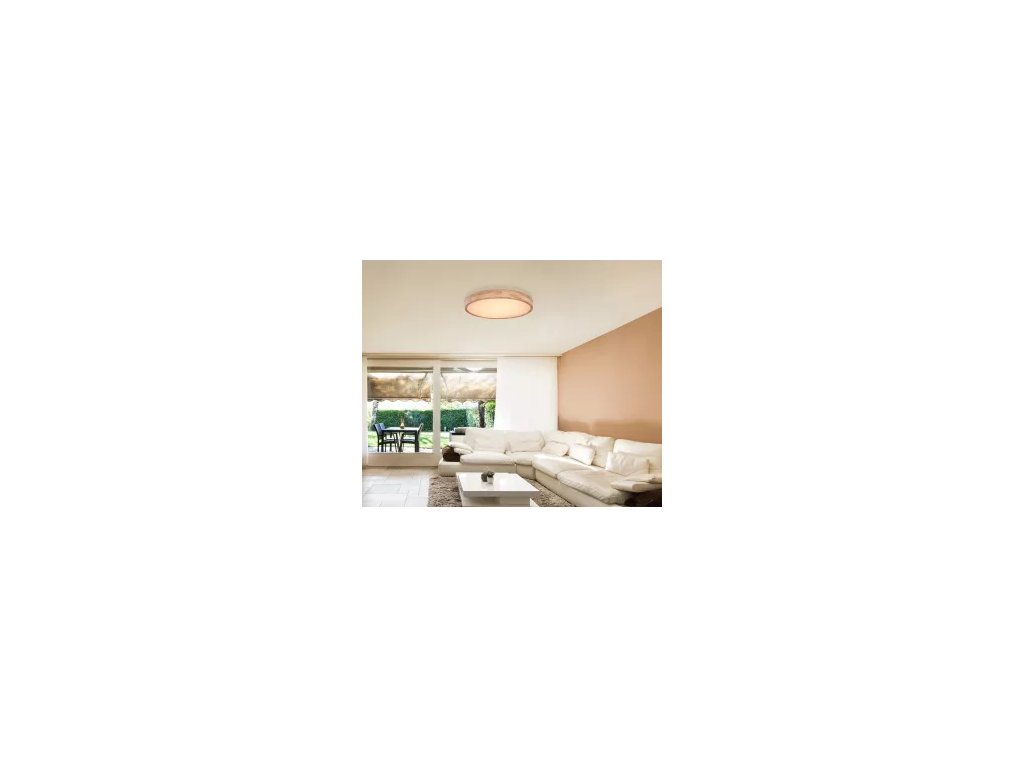Stropní svítidlo (Ø 60 cm) z kovu v dřevěném designu s plastovým opálovým difuzorem, zaujme svým designem. Svítí intenzitou 240 - 3500 lumenů. Teplota světla se dá regulovat od 2700 do 6500 Kelvinů pomocí dálkového ovladače. Svítidlo má měnič barev s možností fixace barev. Svítidlo je velmi univerzální a lze kombinovat s modely ze stejné série pro doplnění vzhledu vašeho interiéru.
