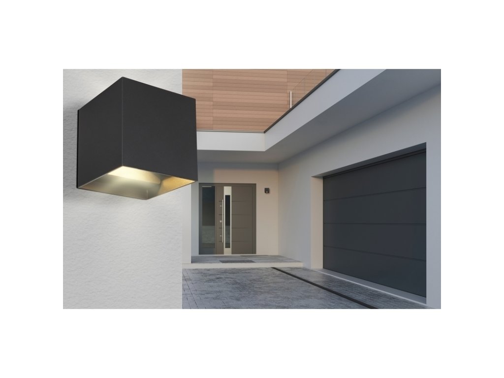 Moderní nástěnné svítidlo v černé barvě inspiruje svým jednoduchým designem. V černé kostce 10x10cm je umístěn LED panel, který svítí teplým bílým světlem o hodnotě 3000 Kelvinů. Stupeň krytí IP54 proti stříkající vodě zaručuje, že svítidlo lze bezpečně umístit v exteriéru.