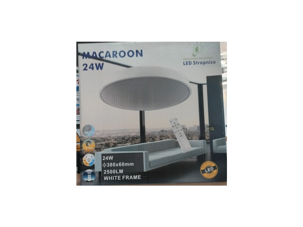 Moderní stropní LED svítidlo s bílým tenkým rámečkem. Součástí svítidla je dálkový ovladač, kterým lze svítidlo smívat a měnit barvu světla v rozpětí od 3000K do 6500K.