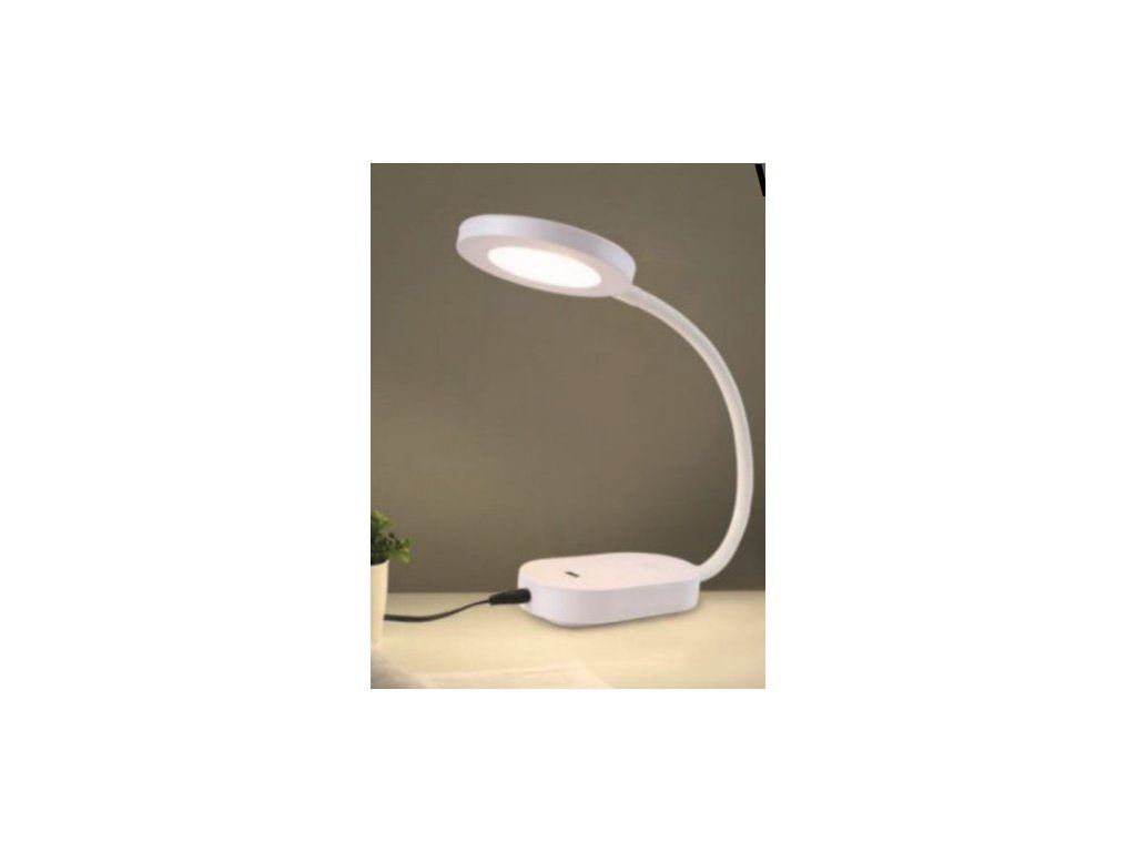 LED stolní nebo nástěnná lampa. Dotykové ovládání na těle lampy, 4 stupně intenzity svícení, USB výstup, flexibilní krk, montáž upevňovacího protikusu pomocí lepící pásky nebo šroubu.