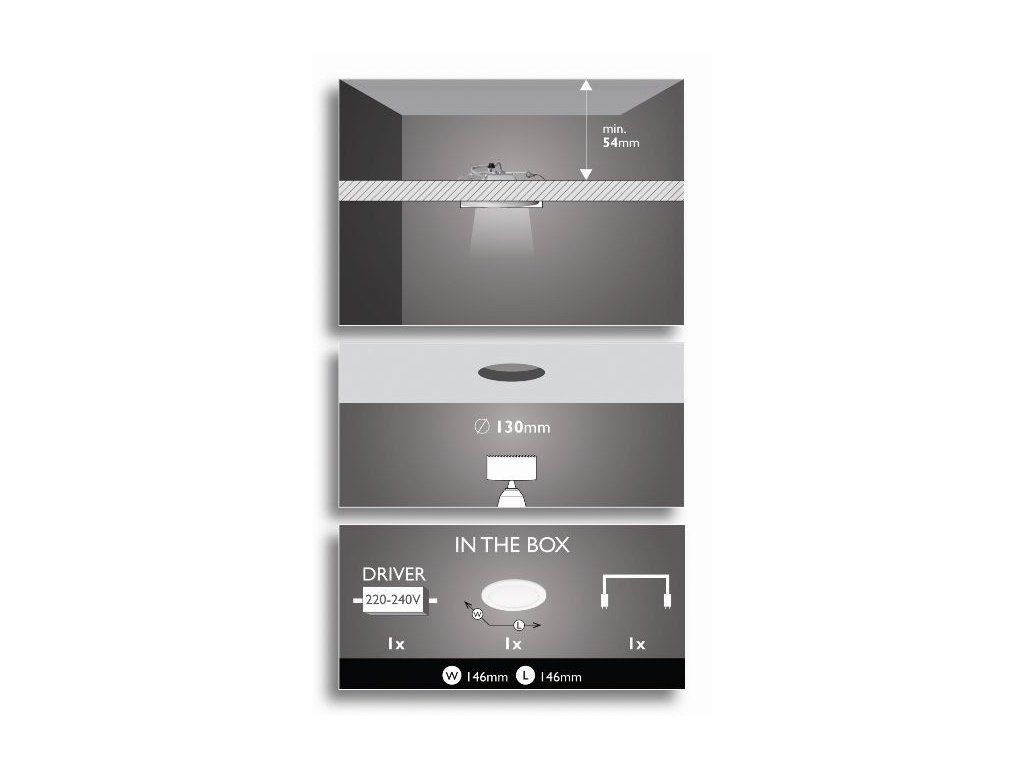 Elegantní LED svítidlo s bilým rámečkem, které se zapustí do povrchu – stropu, stěny apod. Svítidlo použijte například do chodby nebo haly, kuchyně nebo obýváku. To, do jakých obrazců a jak hustě svítidla rozmístíte, je na vaší fantazii.