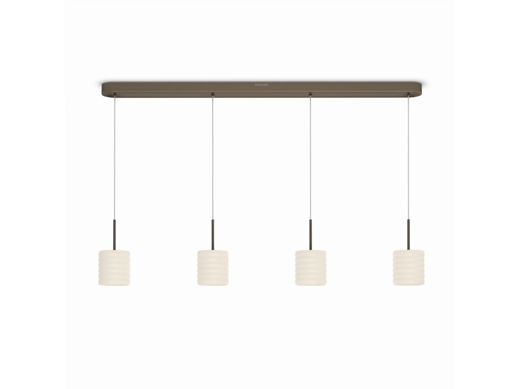 Toto závěsné světlo Philips InStyle Ortega z krémového skla tvoří světelné kalíšky na masivní bronzové základně. Vlídný rýhovaný design vytváří spoustu měkkého rozptýleného světla ze stmívatelných hřejivých bílých diod LED. Součástí je systém click!FIX umožňující snadnou montáž.
