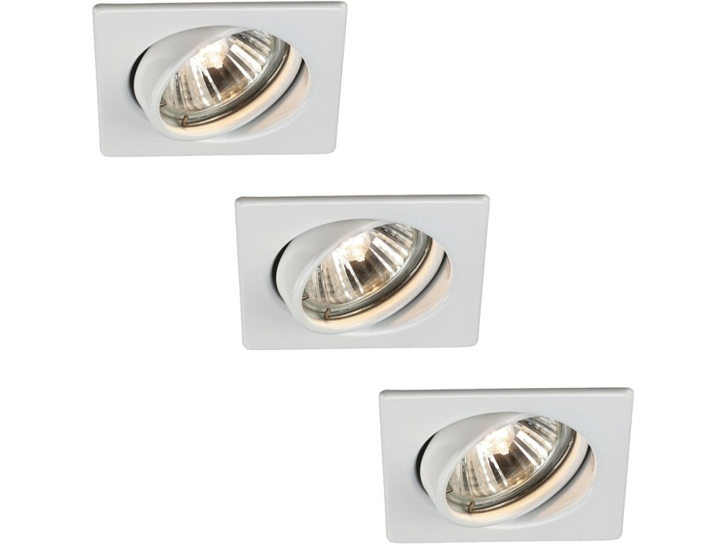 Sada 3 ks zapuštěných svítidel. Svítidlo je vyrobeno z kovu v bílé povrchové úpravě. Díky IP krytí 23 je vhodné i do prostor se zvýšenou vlhkostí. Halogenová žárovka je součástí balení. Zde si můžete zakoupit vhodný LED úsporný zdroj.