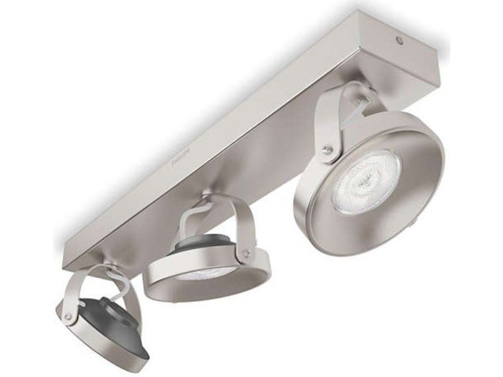 Tříbodové LED svítidlo v odstínu niklu s otočnými hlavami.